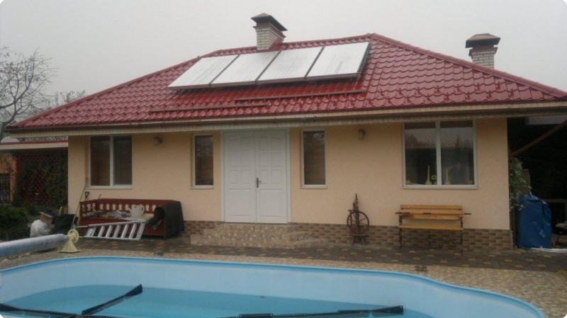 Система для сезонного обогрева бассейна в комбинации с поддержкой отопления и нагревом ГВС с использованием комбинированного накопителя с зануренным резервуаром ГВС